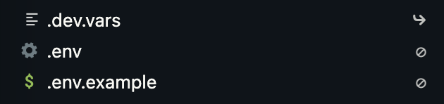 API_TOKEN = "ABCDEFGHIJKLMNOPQRSTUVWXYZ";Cloudflare uses .dev.vars, however, .env is the typical approach. Therefore, when you run pnpm dev, RedwoodSDK will automatically create a symlink from .env to .dev.vars.