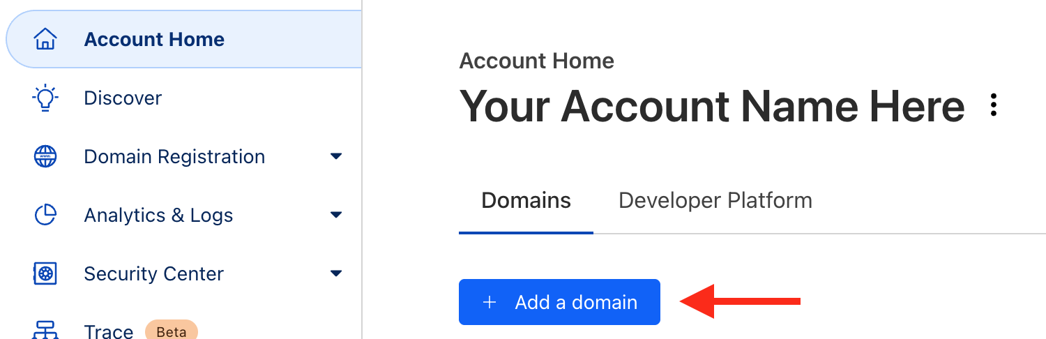 If you already have a domain name, or simply prefer to use a different registrar, you can add your domain to Cloudflare as follows: