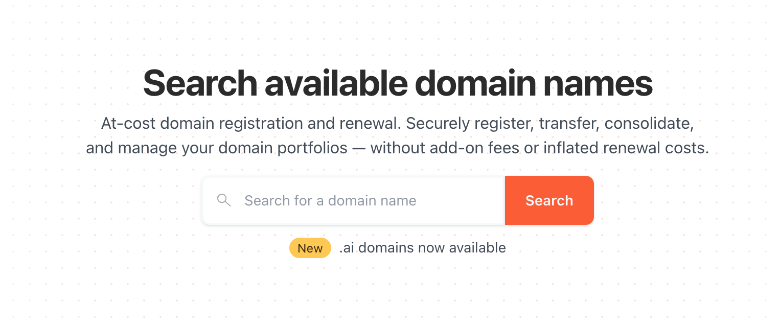If you don't already have a domain name, it's super easy to just buy one through Cloudflare. This is the easiest option, and will let you host your site on your new domain name right away.